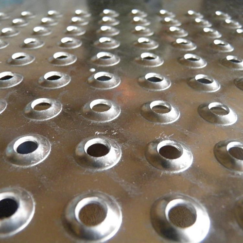 鱷魚嘴踏步板是采用數(shù)控沖床在金屬板材上面經(jīng)過沖孔、起鼓、裁剪、折彎、表面處理等幾道工序進行生產(chǎn)制造的,生產(chǎn)鱷魚嘴踏步板的金屬板材可以是鐵板、鋁板、不銹鋼板等幾種材質(zhì)。