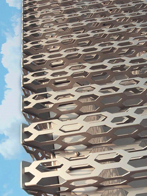 沖孔裝飾網(wǎng)作為包柱:可在酒店大堂或是飯店的大堂用沖孔板包柱,比以往的純金屬包柱要顯得更新穎更雅致;